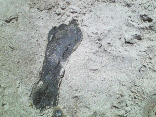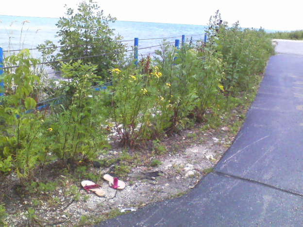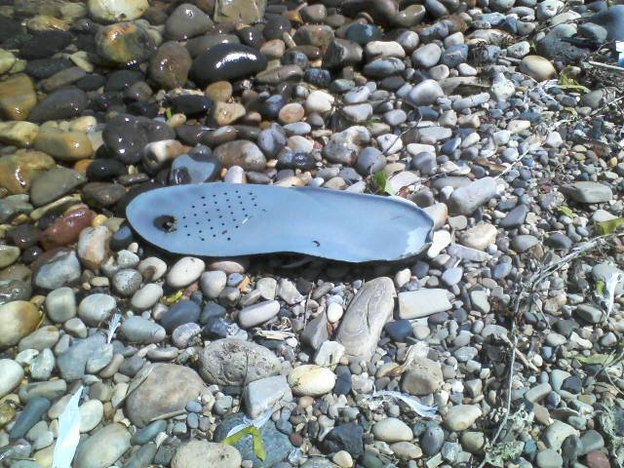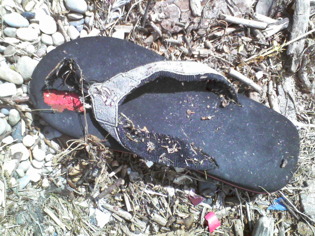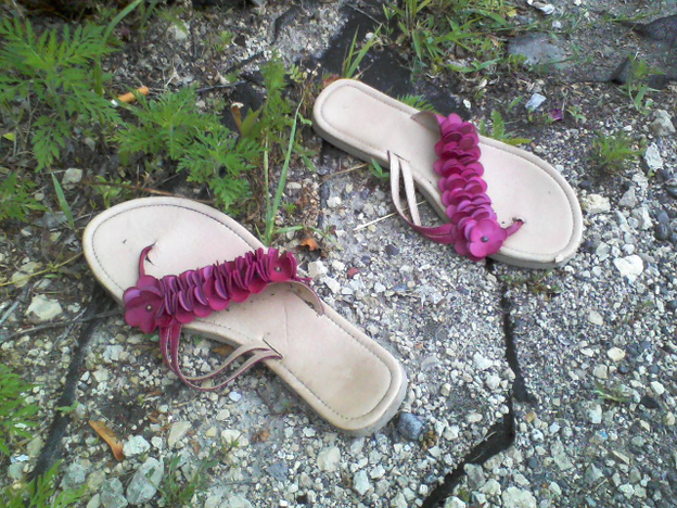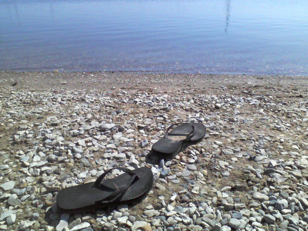 These flip-flps look as if someone stepped out of them right into the water.