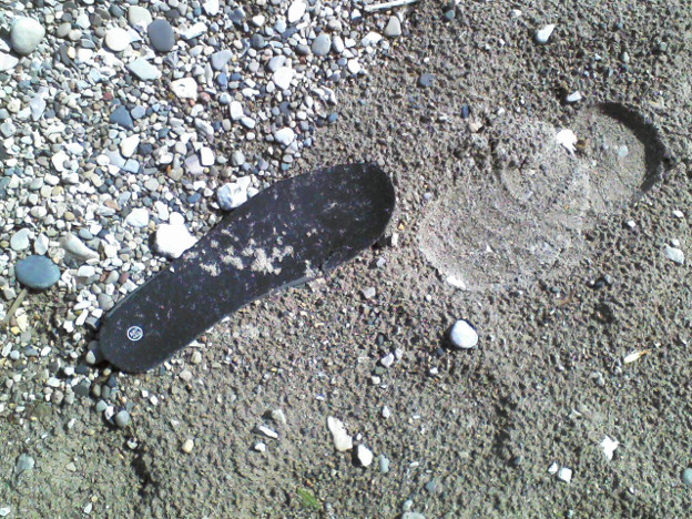 The first shoe of the season is part of a sole. It is very degraded and I expect it is left over from last year.