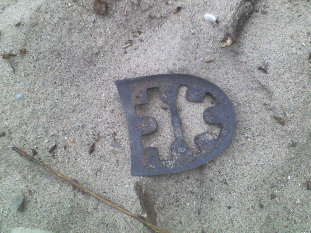 I had to flip it over to be sure what it was. You can see little perforations around the edge that indicate that it is part of a shoe.